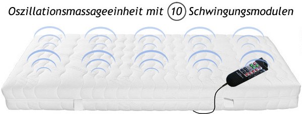 Oszillationsmassage. Oszillationsmassage kann als Therapie angewendet werden. Die Methode der Tiefen Oszillationsmassage wurde Anfang der 80er Jahre entwickelt. Auch in der stationären und ambulanten Behandlung hielt diese Massage, auf Grund ihrer erstaunlichen Therapieerfolge, ihre Anwendung. Eine wohlige Entspannung und die Stimulation aller Körperflüssigkeiten (Hirnwasser, Blut,Lymphe etc.) ermöglicht viele positive Wirkungen. Die Oszillationsmassage wird als angenehme, sanfte Schwingungen, die alle Körperzellen erreichen, wahrgenommen. Die Intensität bestimmen Sie. Was für eine Wohltat! Sie können bei uns natürlich kostenlos "Probeliegen" aber auch prüfen ob unser Massagesystem hält, was es verspricht. So können Sie sich bei uns z.B. durch die Massage - Matratze für nur 12,-€, 30 min. lang verwöhnen, entspannen oder beleben lassen. für nur 90,-€ 10 mal 30 min. Eine computergesteuerte Oszillationsmassage ist das wellness - High Light der von uns angebotenen Matratzen (mit Massageeinheit). Sie können aus verschiedenen Massageprofilen Ihr ganz persönliches Wohlfühlprogramm wählen. 10 Massage - Module in der Matratze beginnen auf Knopfdruck Sie zu verwöhnen, zu lockern und zu entspannen. Massage aktiviert Ihr Lymphsystem, überflüssige Zellflüssigkeit und Stoffwechselprodukte werden abgebaut. Bei folgenden Beschwerden kann die Massageeinheit angewendet werden: -Antriebslosigkeit, Burnout -Bewegungsmangel,-Muskelverspannungen, |